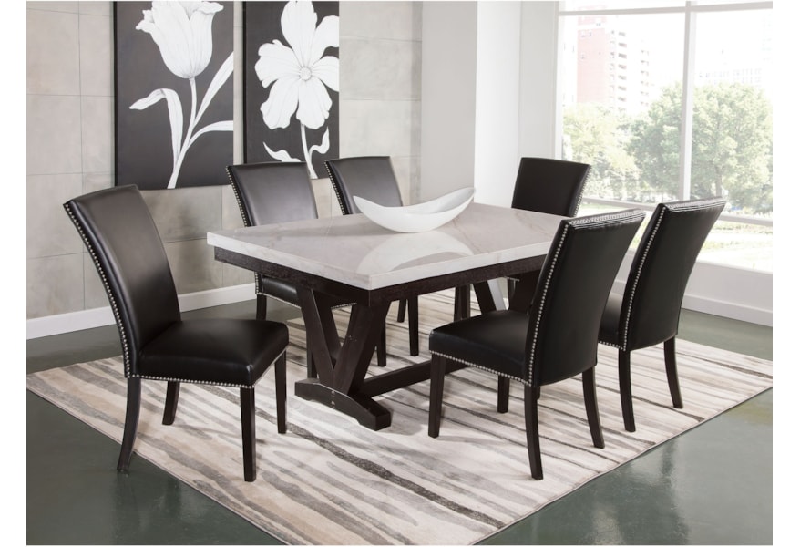 Star Finley Fl500wt 6xskn Glam Contemporary 7 Piece Dining Table And Chair Set With Marble Top Efo Furniture Outlet Dining 7 Or More Piece Sets